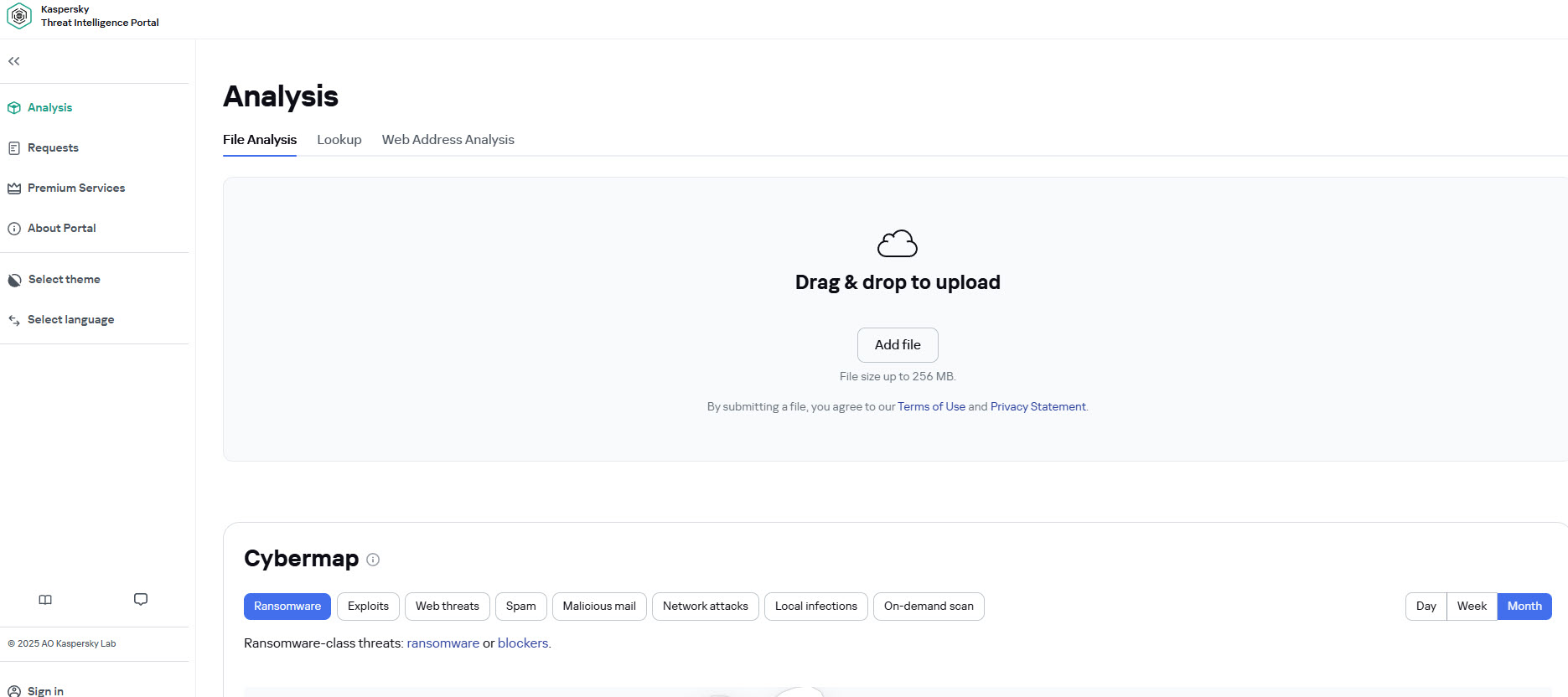 Данный сервис пришел на смену старому Virus Desk, только теперь здесь предоставляется в разы больше данных. Это целая аналитическая система, которая в режиме реального времени проводит анализ, мониторинг со всех сервисов Касперского.